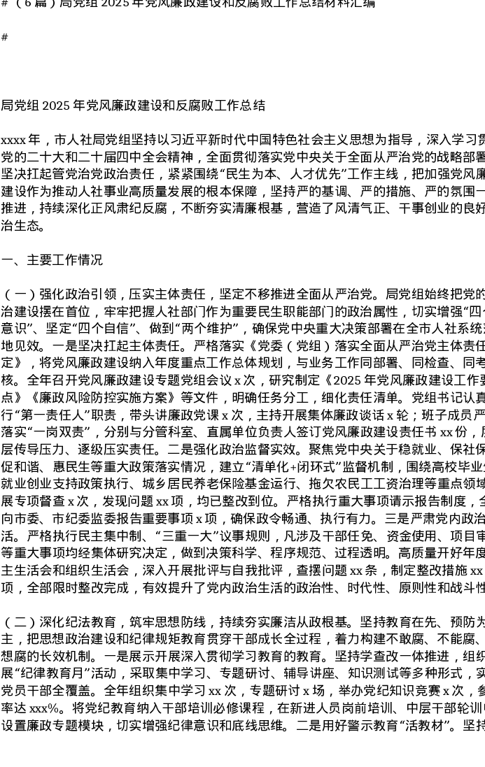 汇编:局党组2025年党风廉政建设和反腐败工作总结6篇