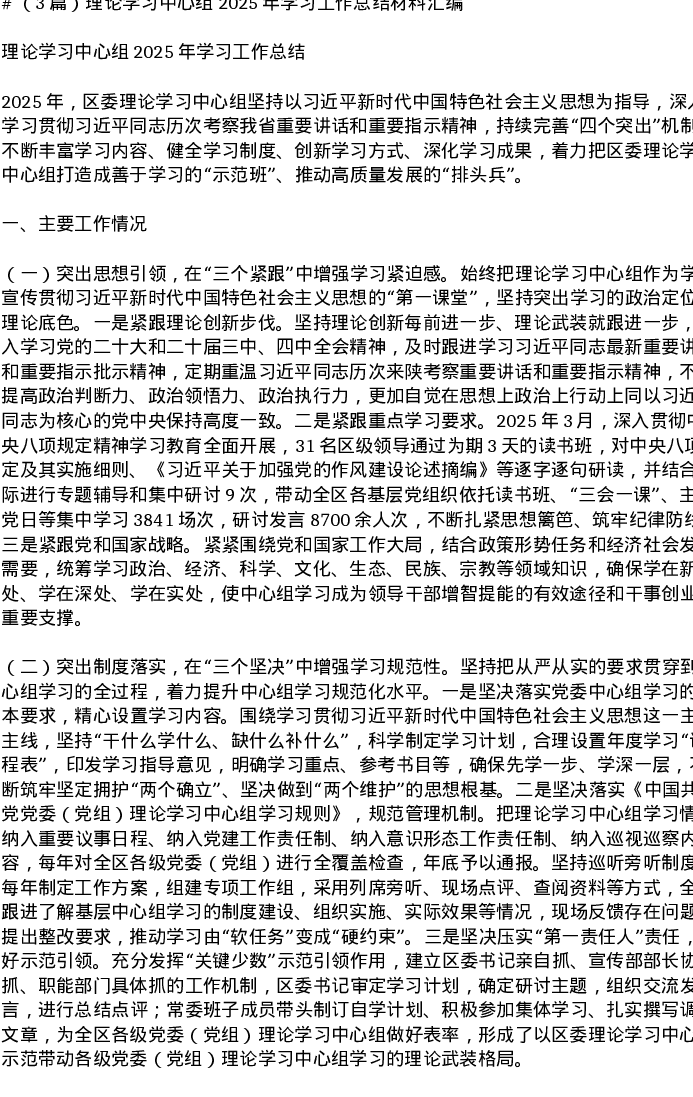 汇编:理论学习中心组2025年学习工作总结材料汇编