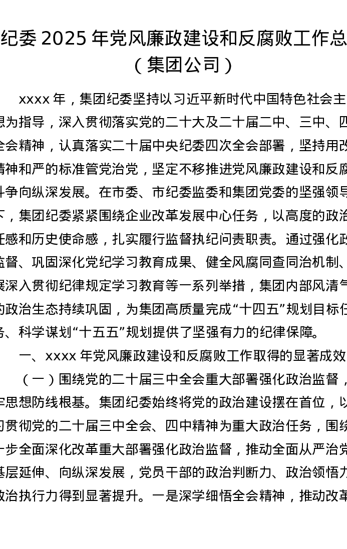 纪委2025年党风廉政建设和反腐败工作总结(集团公司)