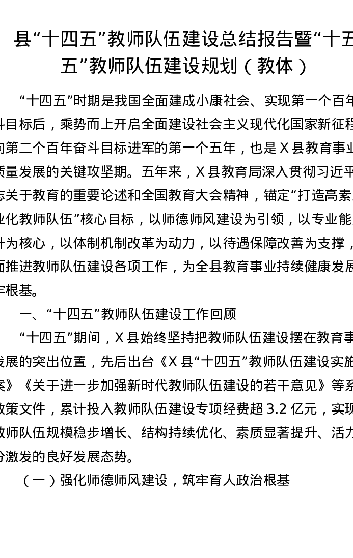 县十四五教师队伍建设总结报告暨十五五教师队伍建设规划(教体)