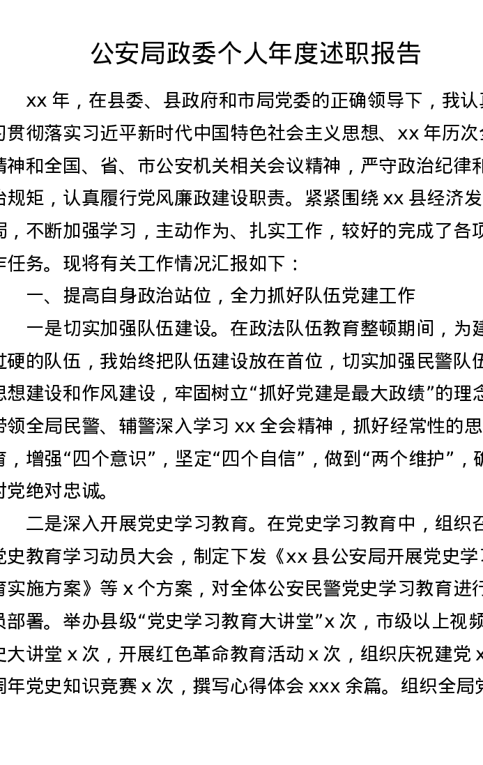 公安局政委个人年度述职报告