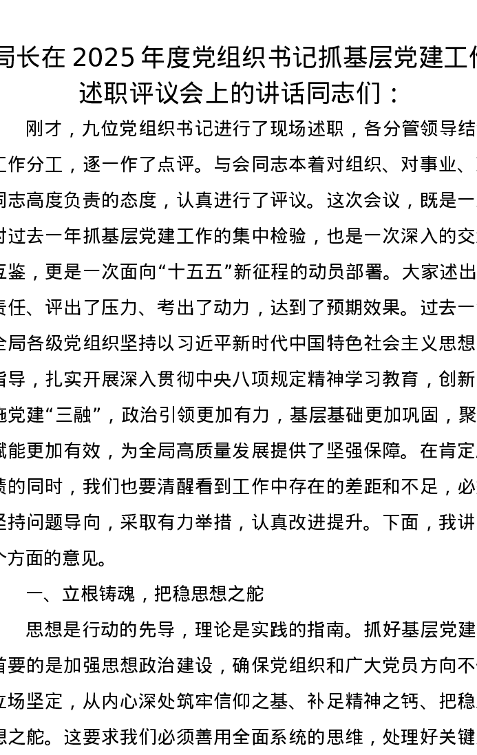 局长在2025年度党组织书记抓基层党建工作述职评议会上的讲话