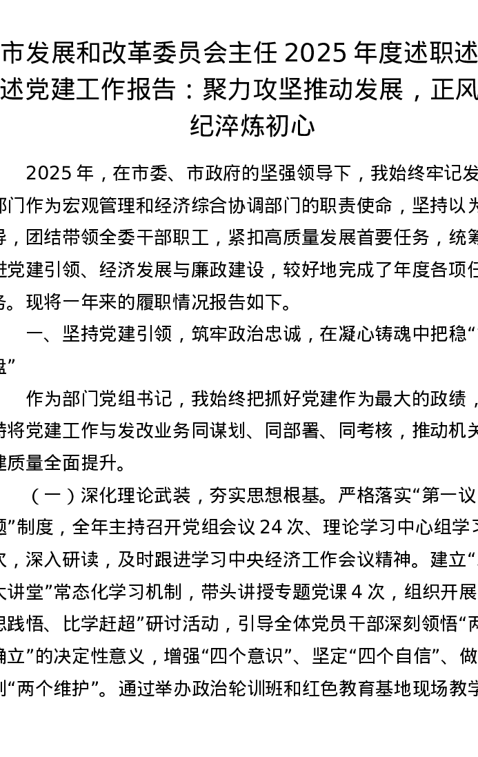市发展和改革委员会主任2025年度述职述廉述党建工作报告:聚力攻坚推动发展,正风肃纪淬炼初心