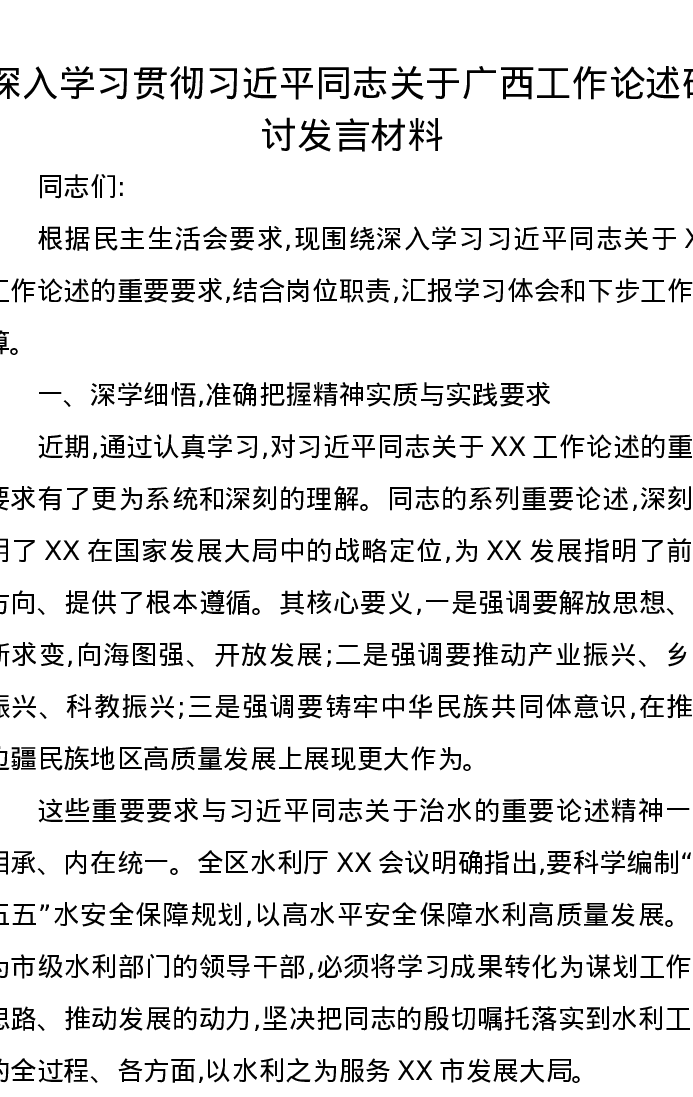 深入学习贯彻习近平总书记关于广西工作论述研讨发言材料