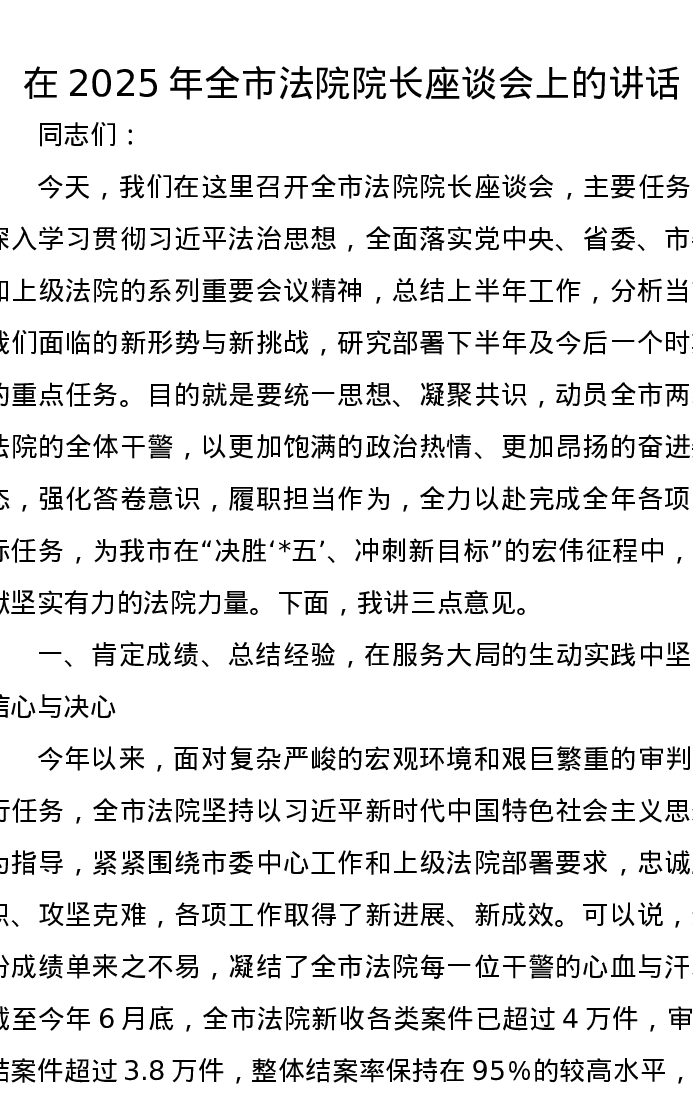 在2025年全市法院院长座谈会上的讲话
