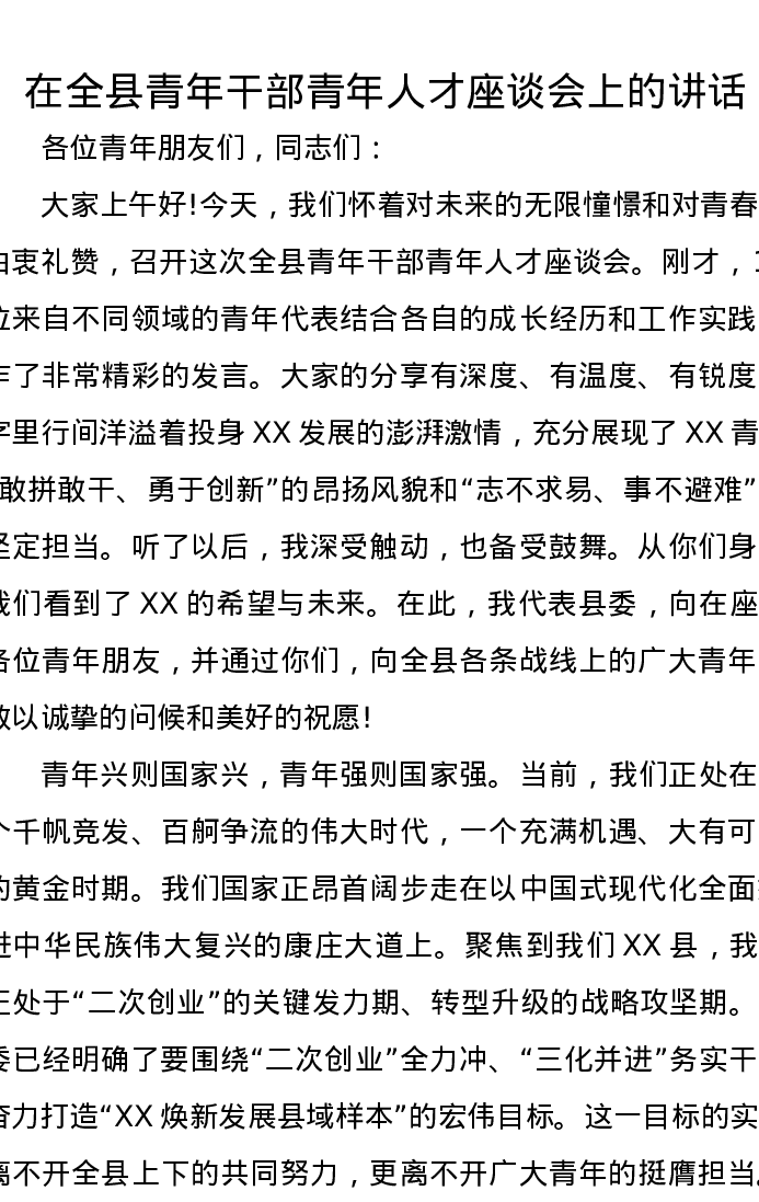 在全县青年干部青年人才座谈会上的讲话