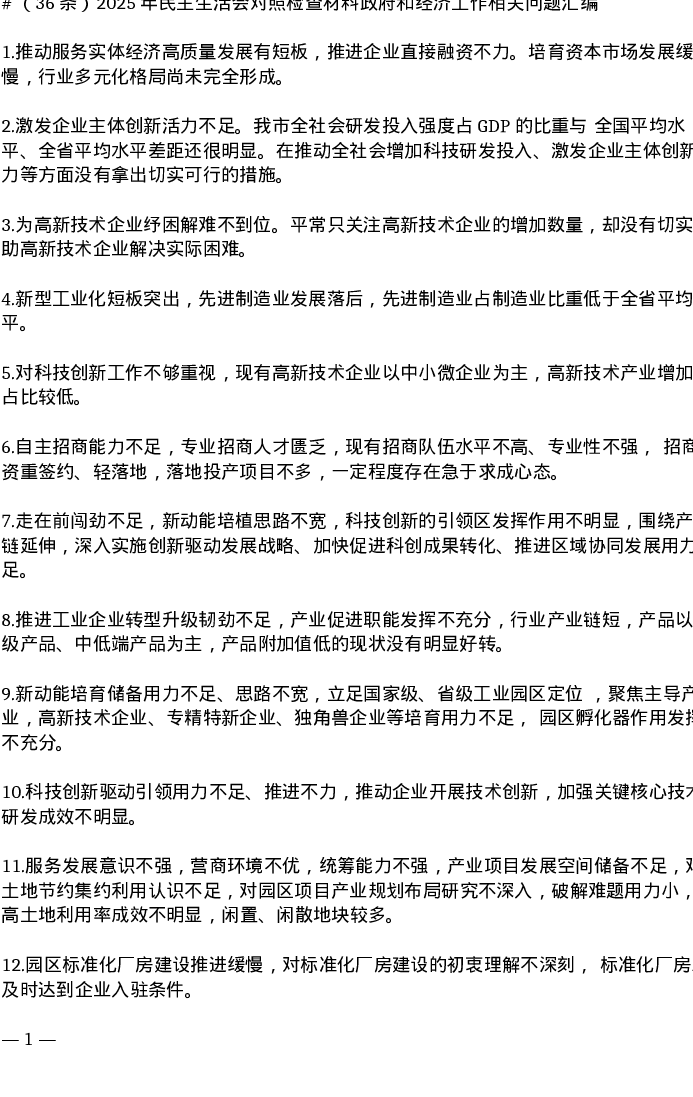 (36条)2025年xxxxx对照检查材料政府和经济工作相关问题汇编