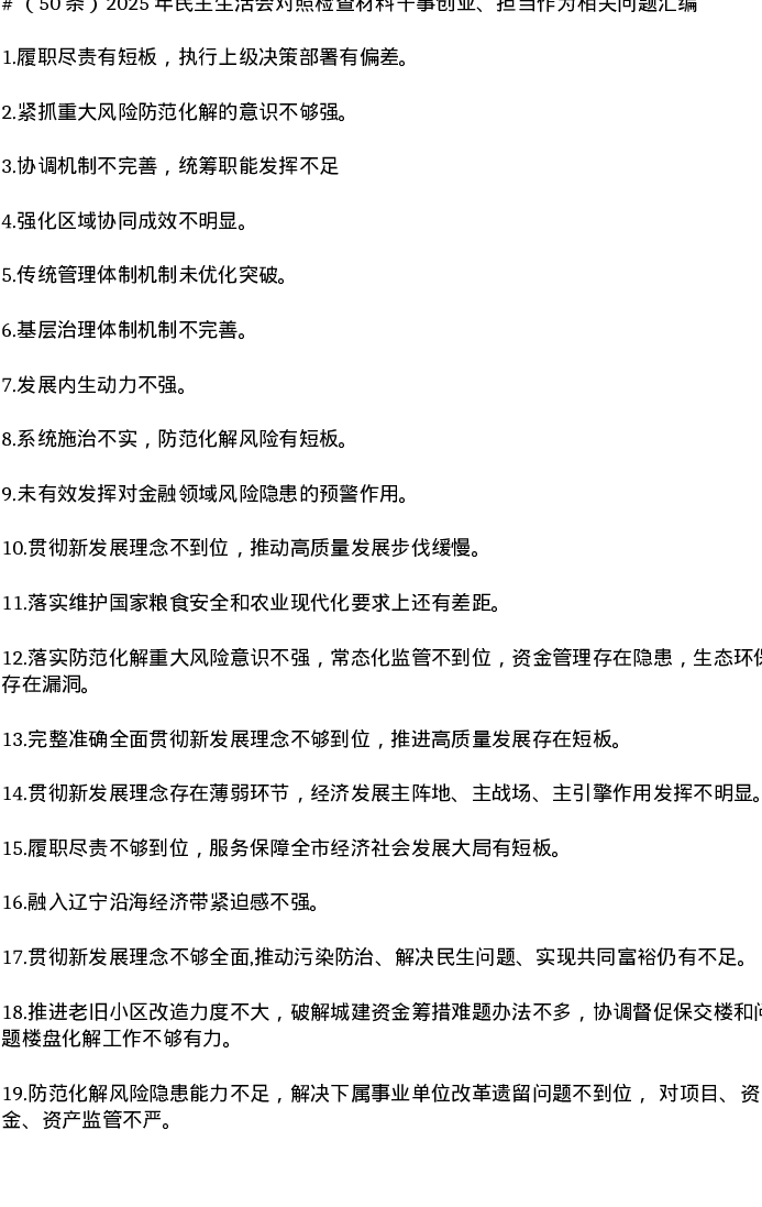 (50条)2025年xxxxx对照检查材料干事创业、担当作为相关问题汇编