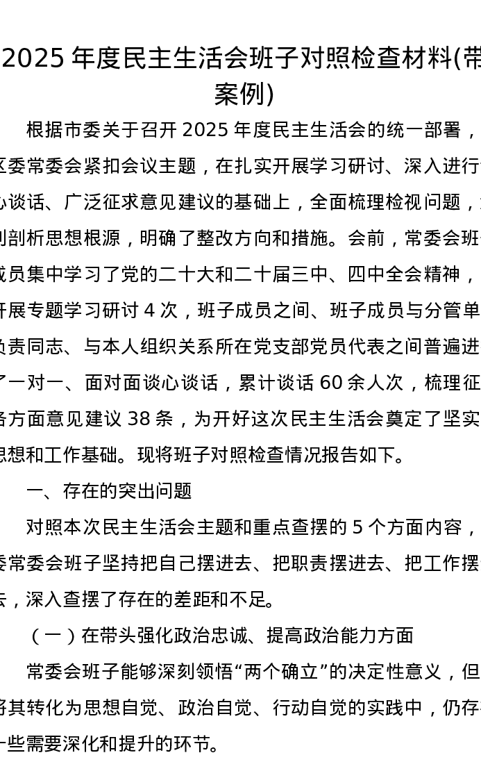 2025年度xxxxx班子对照检查材料(带案例)(五个带头)