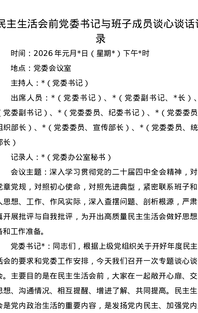 xxxxx前党委书记与班子成员谈心谈话记录