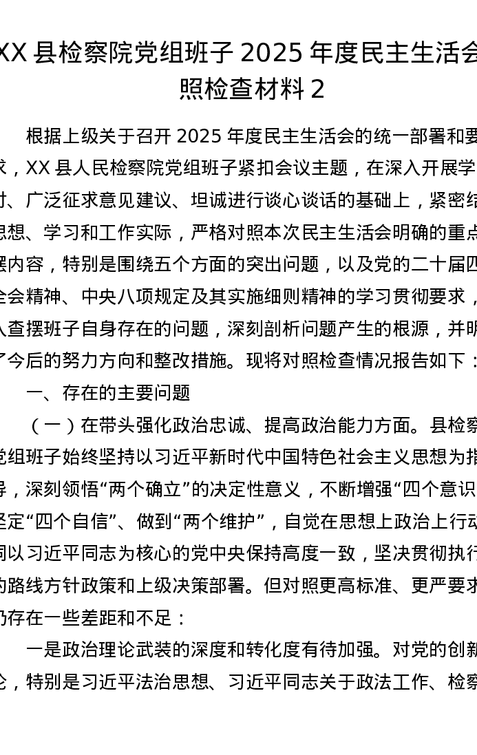 XX县检察院党组班子2025年度xxxxx对照检查材料2