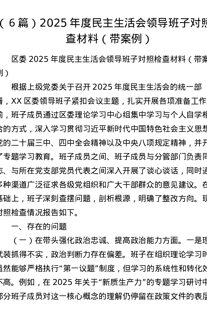 汇编:2025年度xxxxx领导班子对照检查材料(带案例)6篇