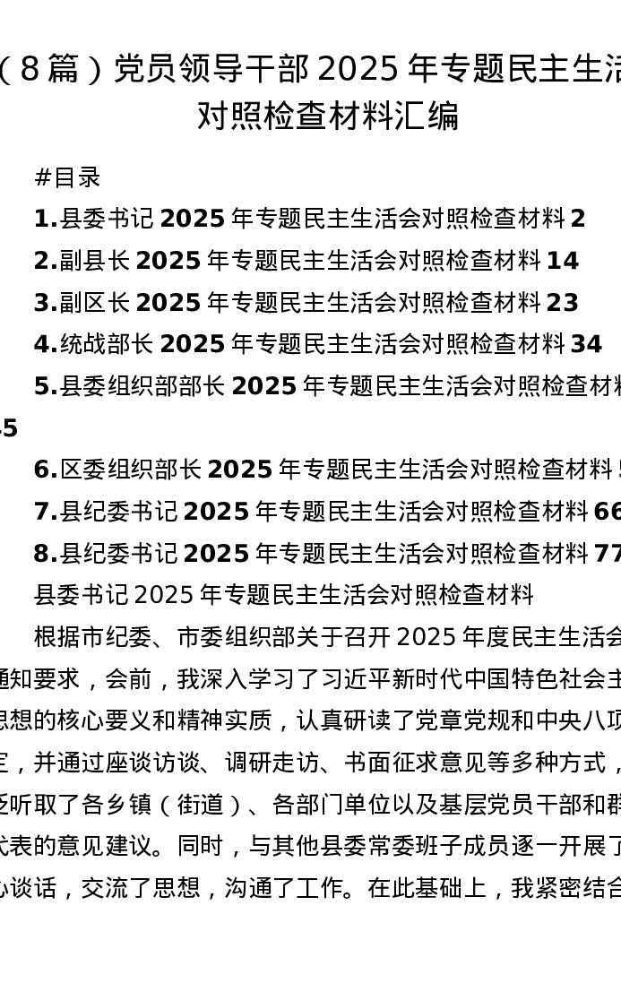 汇编:党员领导干部2025年专题xxxxx对照检查材料8篇