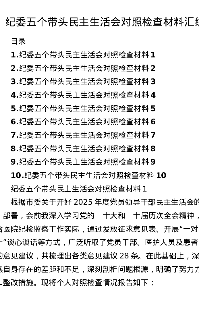汇编:纪委五个带头xxxxx对照检查材料10篇