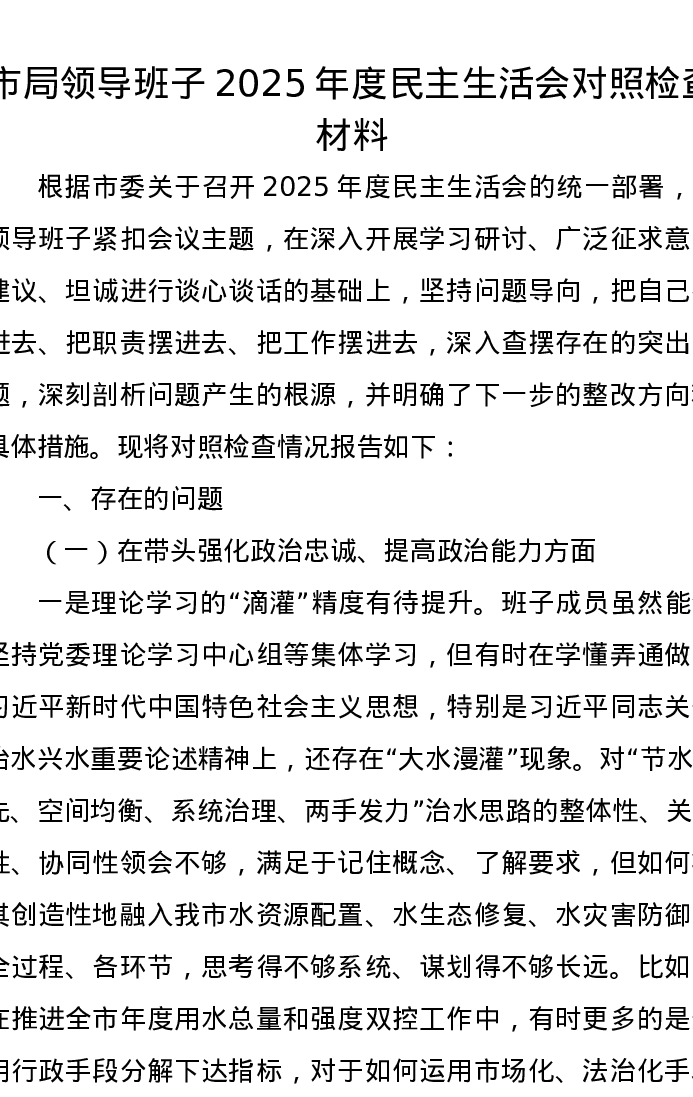 市局领导班子2025年度xxxxx对照检查材料