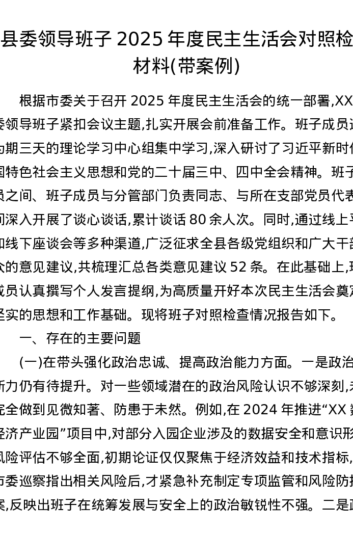 县委领导班子2025年度xxxxx对照检查材料(带案例)