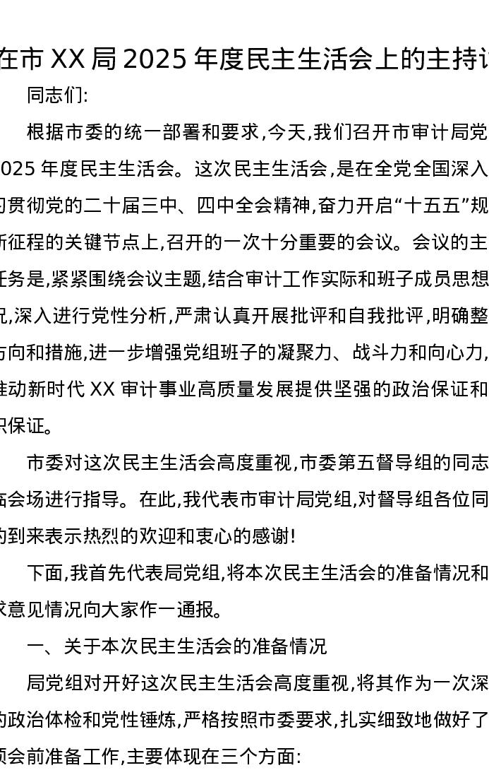 在市XX局2025年度xxxxx上的主持词