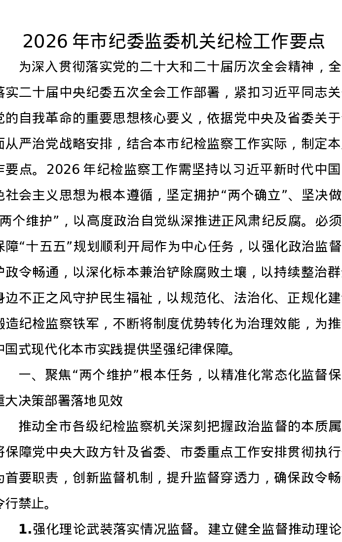 2026年市纪委监委机关纪检工作要点