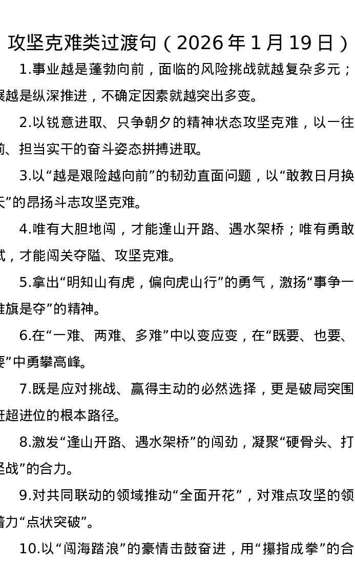 攻坚克难类过渡句(2026年1月19日)