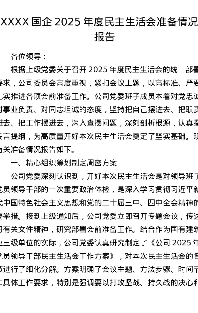国企2025年度xxxxx会前准备情况的报告