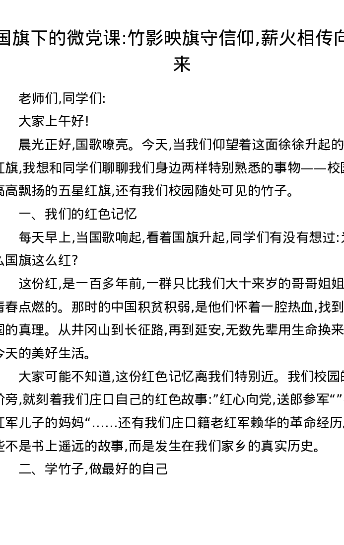 国旗下的微党课讲稿:竹影映旗守信仰,薪火相传向未来