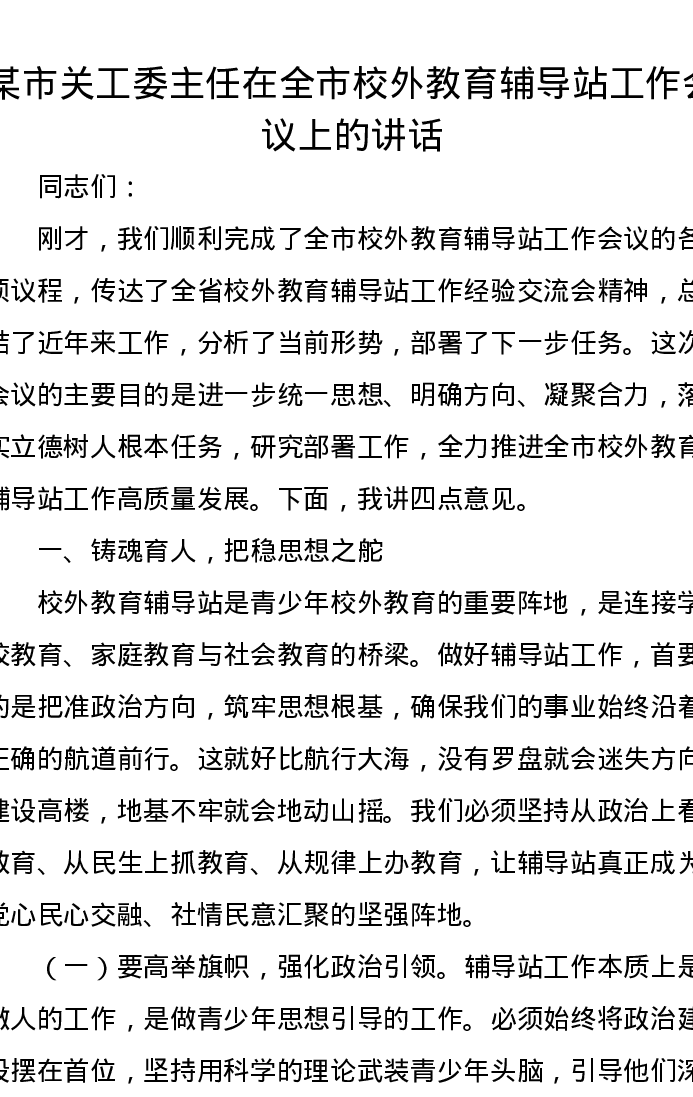 某市关工委主任在全市校外教育辅导站工作会议上的讲话