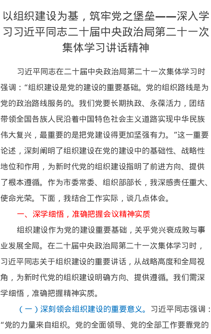 以组织建设为基,筑牢党之堡垒——深入学习习近平总书记二十届中央政治局第二十一次集体学习讲话精神