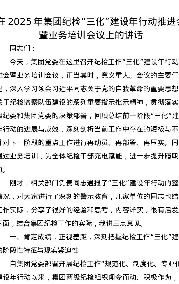 在2025年集团纪检三化建设年行动推进会暨业务培训会议上的讲话