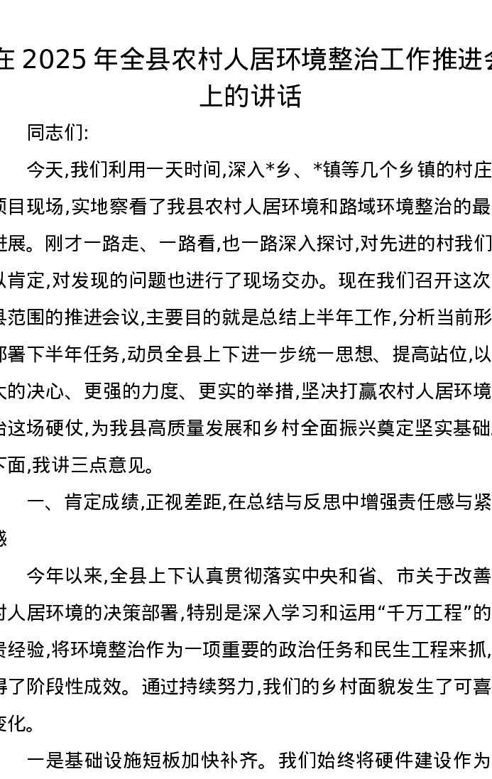 在2025年全县农村人居环境整治工作推进会上的讲话