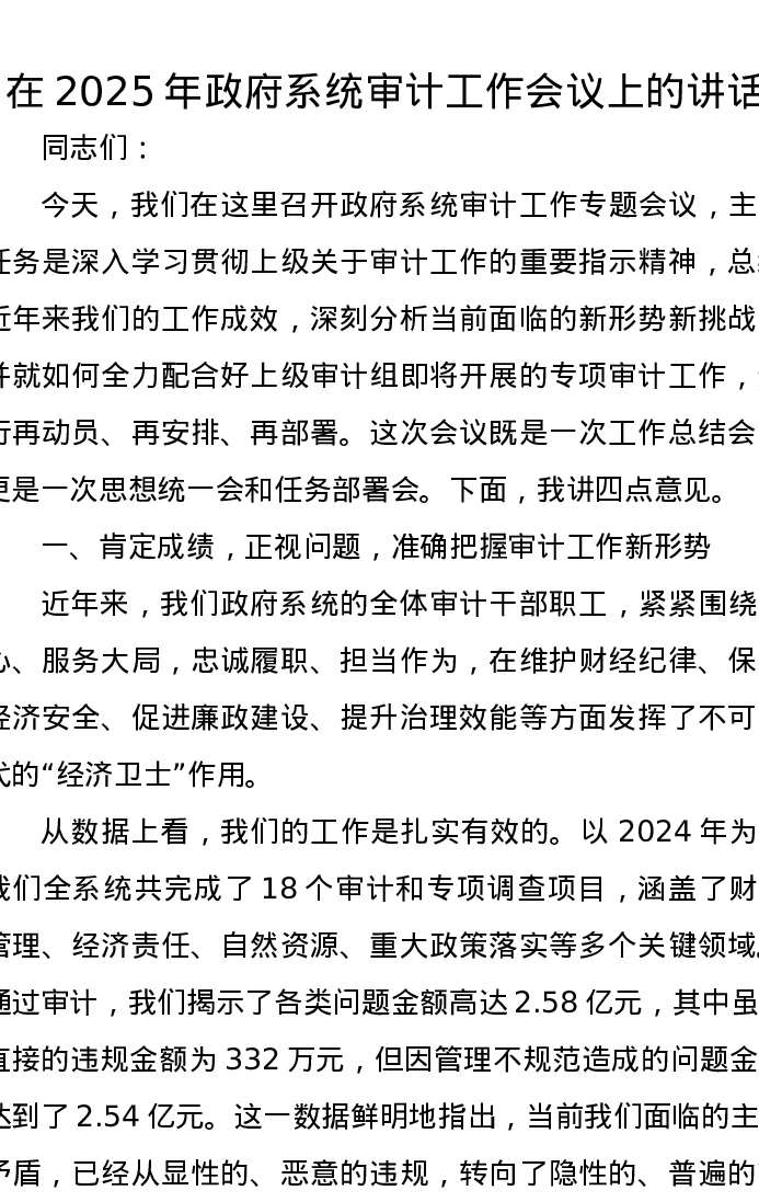在2025年政府系统审计工作会议上的讲话