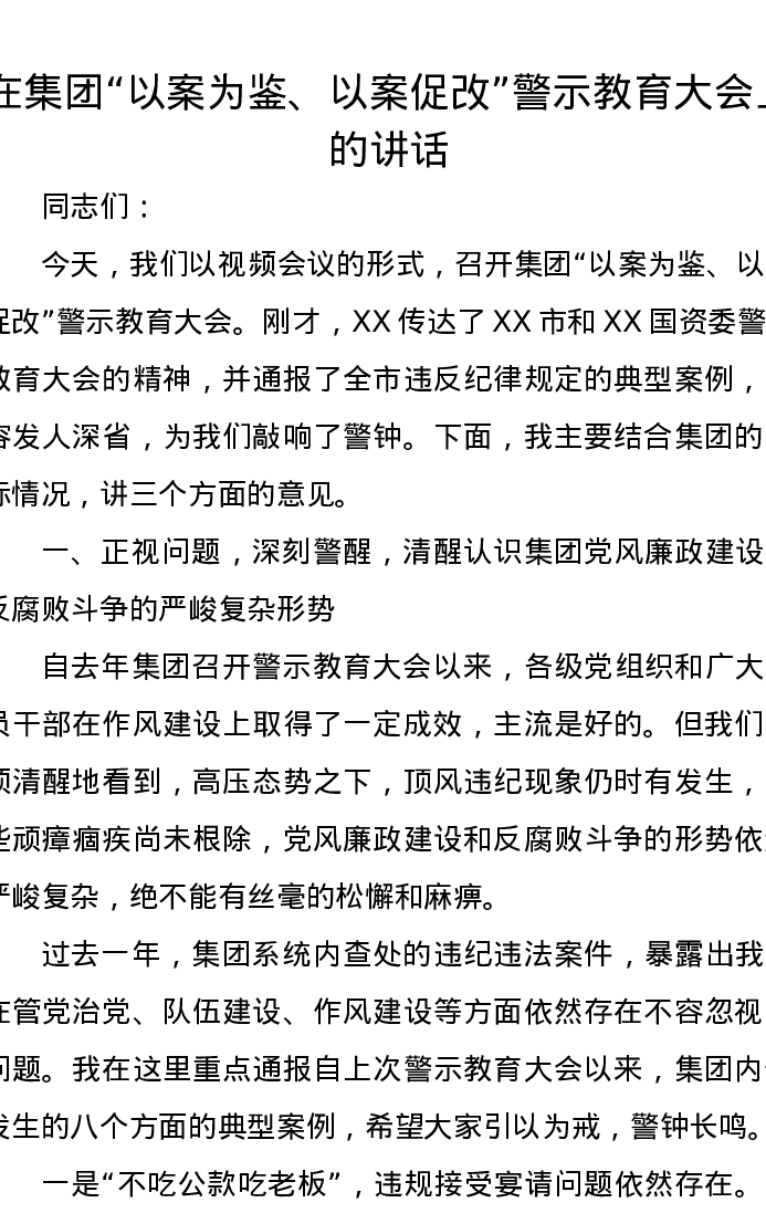 在集团以案为鉴、以案促改警示教育大会上的讲话