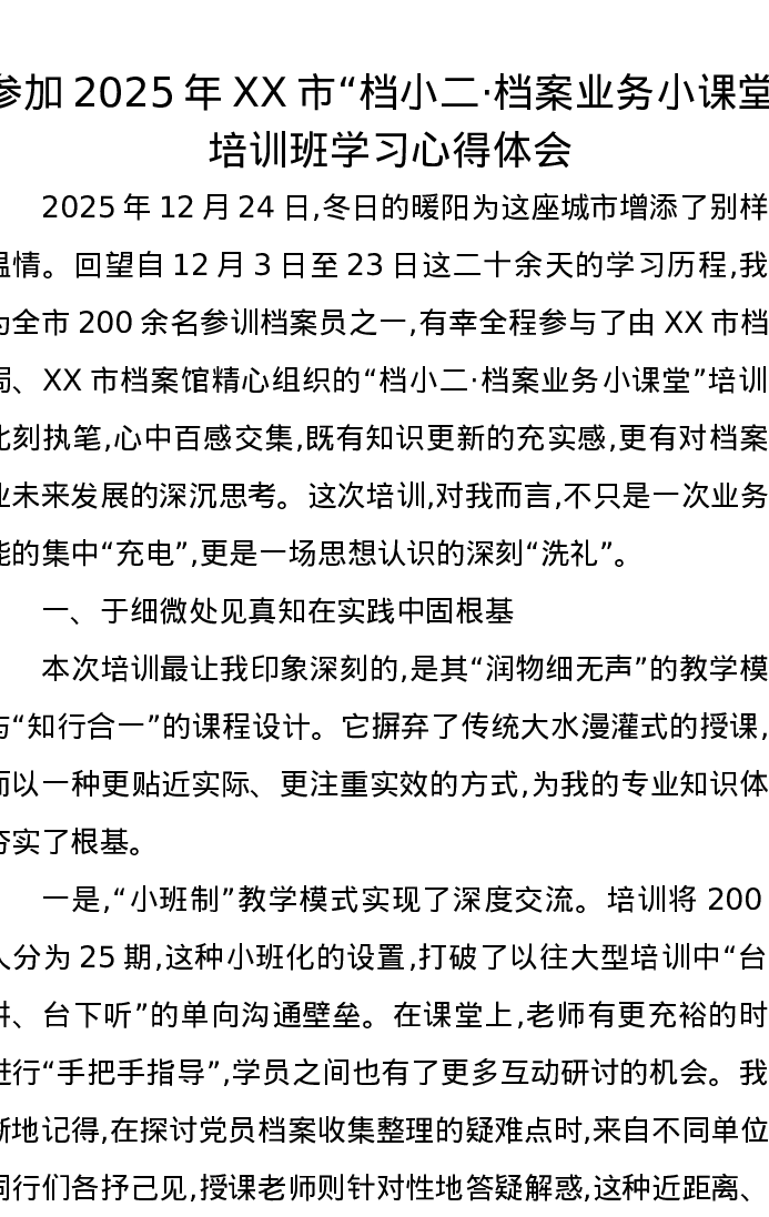 参加2025年XX市档小二·档案业务小课堂培训班学习心得体会