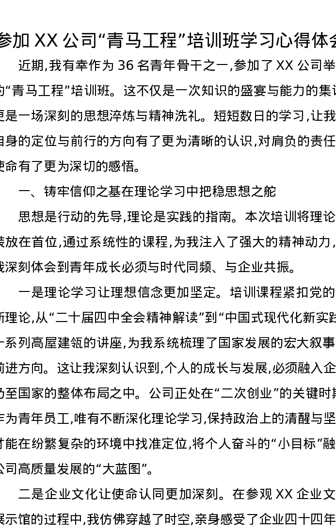 参加XX公司青马工程培训班学习心得体会