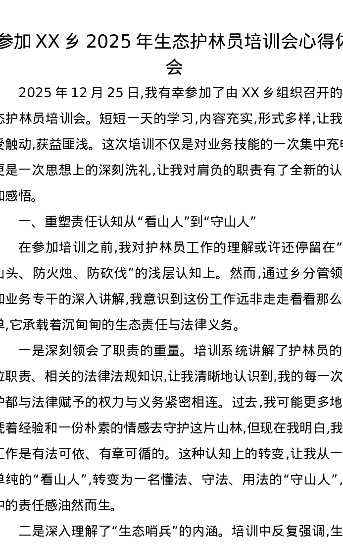 参加XX乡2025年生态护林员培训会心得体会