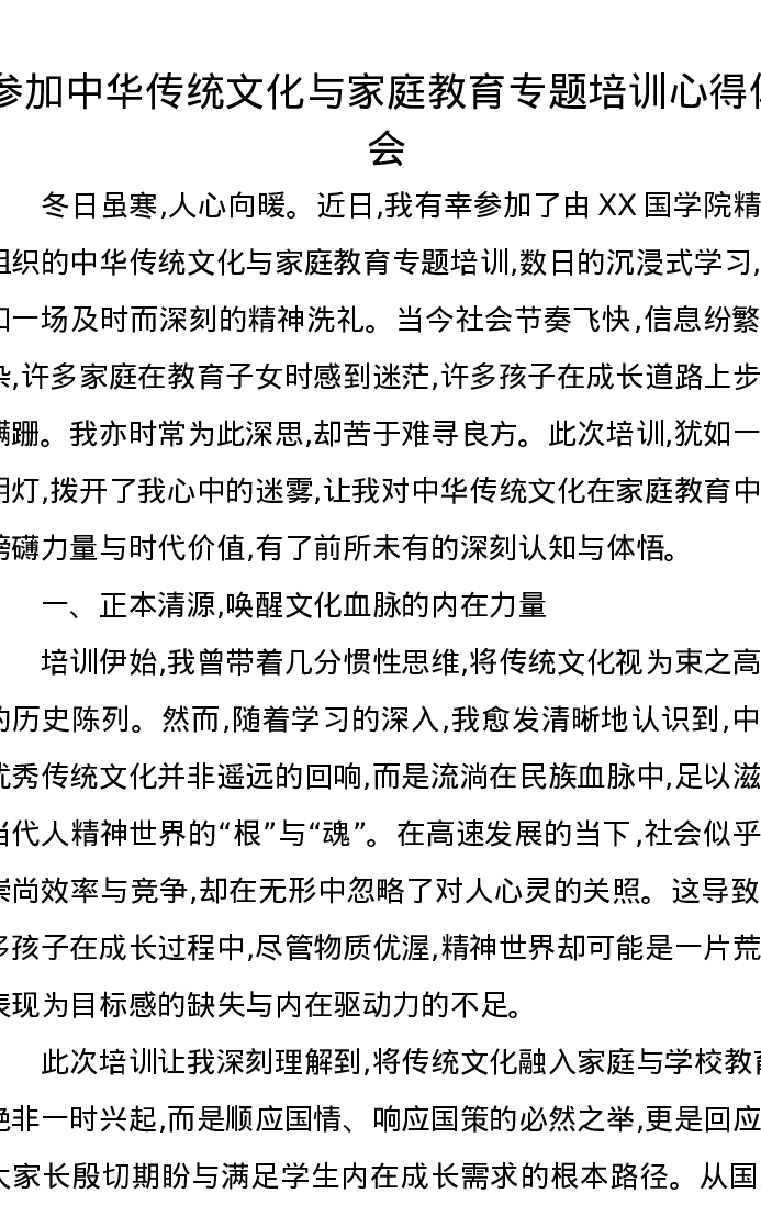 参加中华传统文化与家庭教育专题培训心得体会
