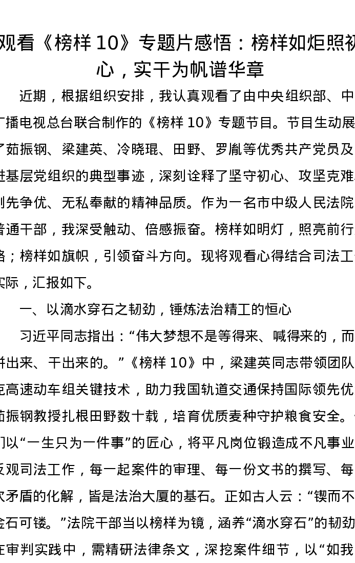 观看《榜样10》专题片感悟:榜样如炬照初心,实干为帆谱华章