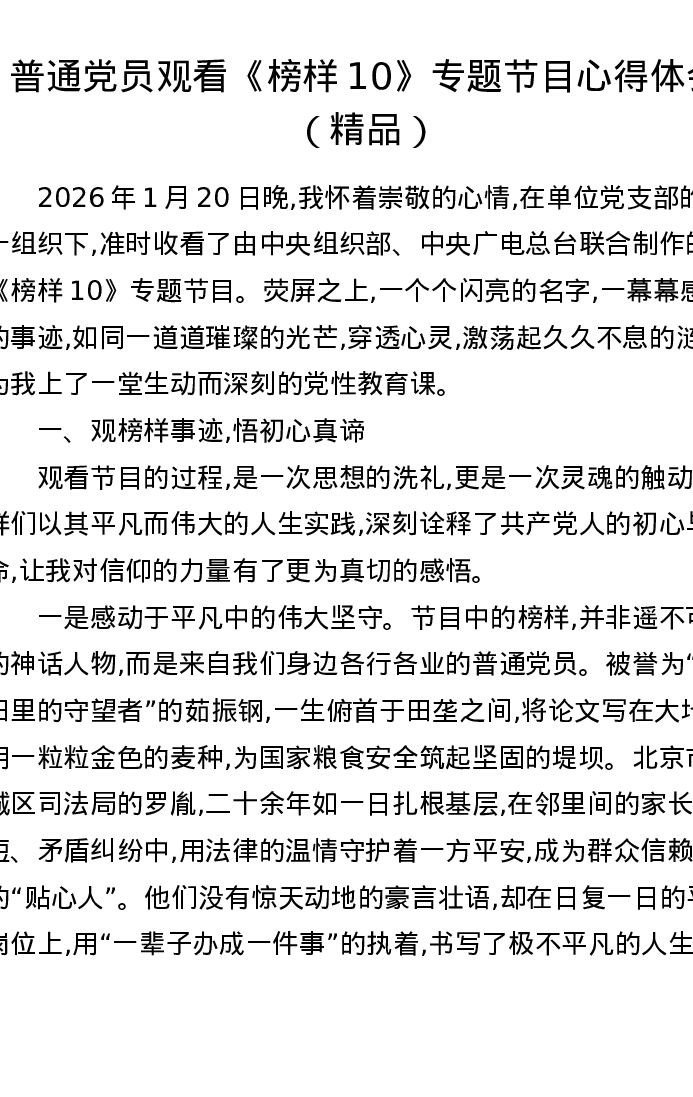 普通党员观看《榜样10》专题节目心得体会