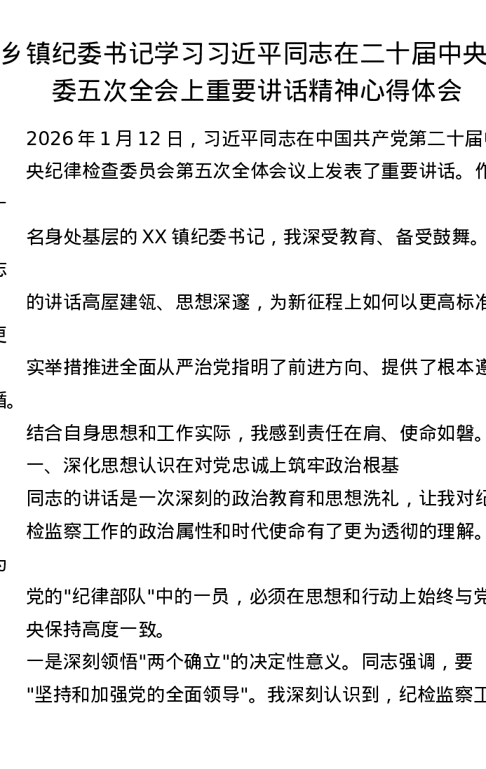 乡镇街道纪委书记学习习近平总书记在二十届中央纪委五次全会上重要讲话精神心得体会