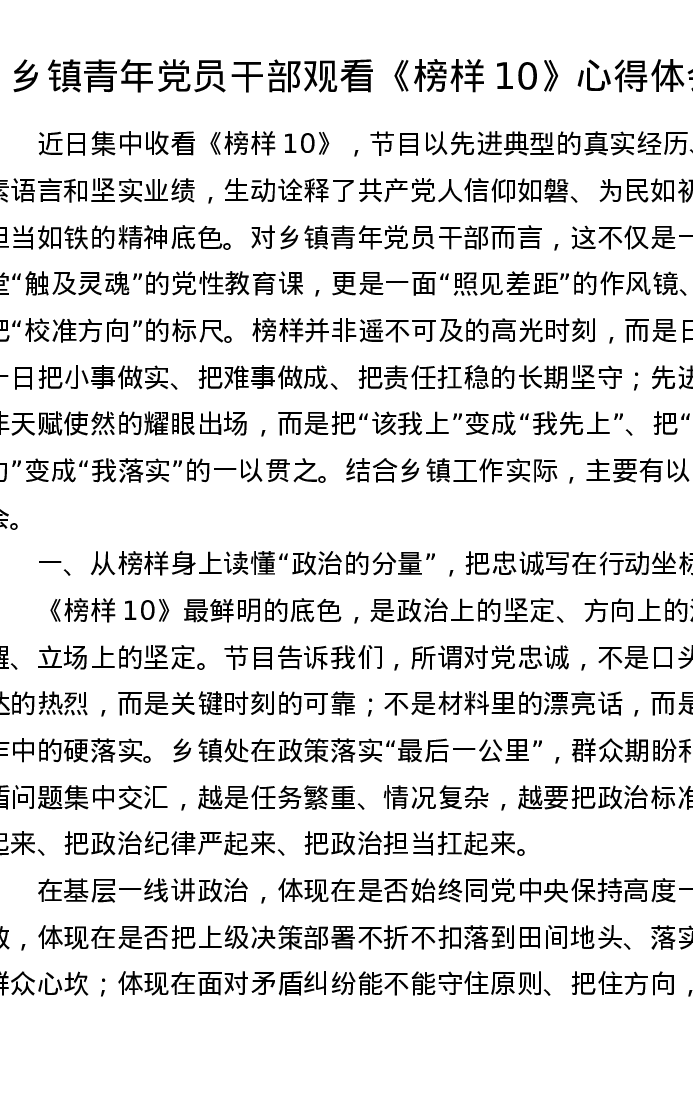 乡镇青年党员干部观看《榜样10》心得体会
