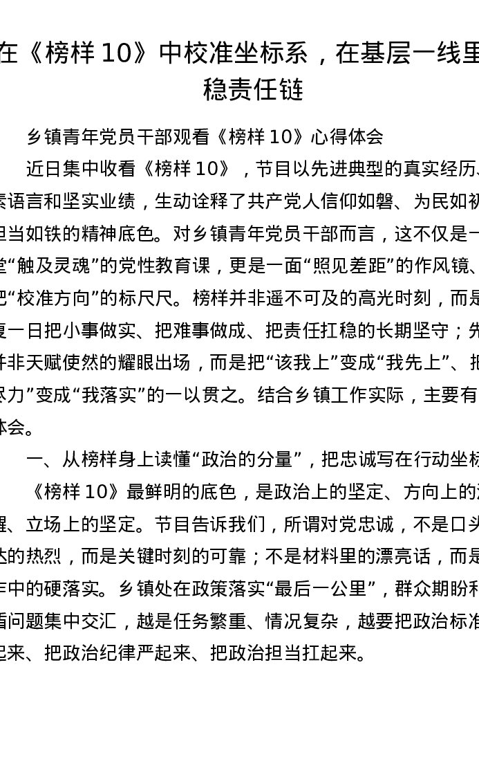 在《榜样10》中校准坐标系, 在基层一线里扛稳责任链