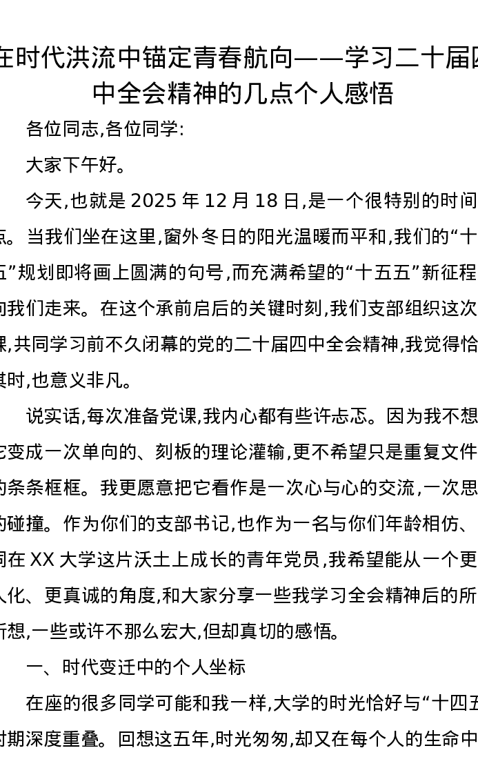 在时代洪流中锚定青春航向——学习二十届四中全会精神的几点个人感悟