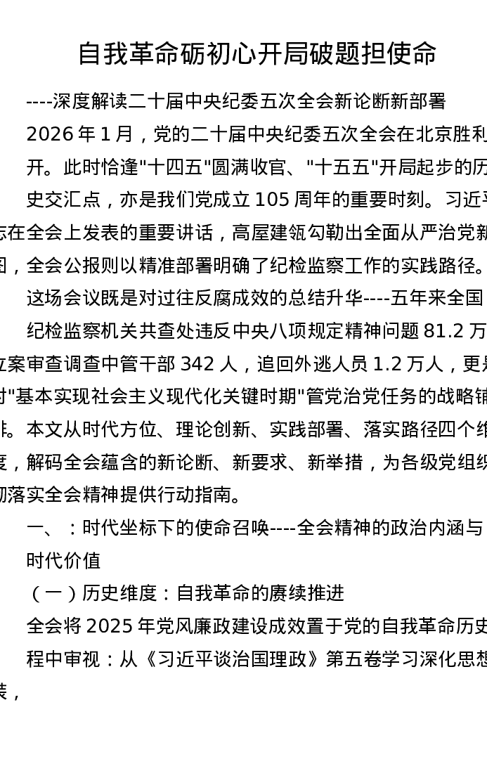 8k字深度解读二十届中央纪委五次全会新论断新部署
