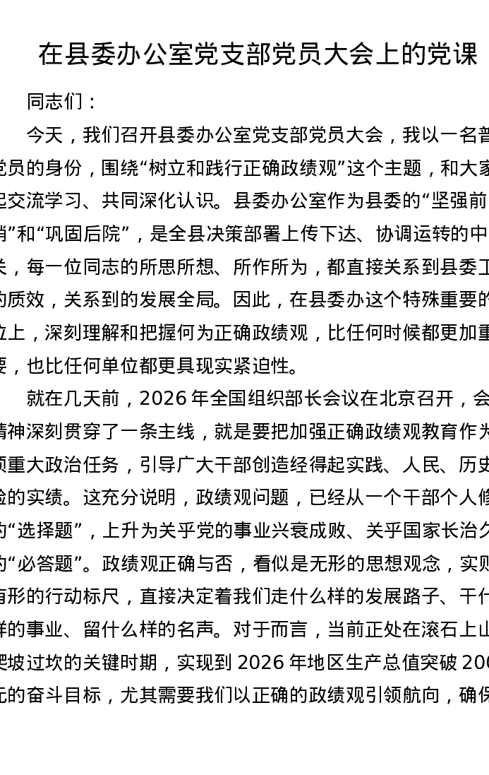 在县委办公室党支部党员大会上的党课