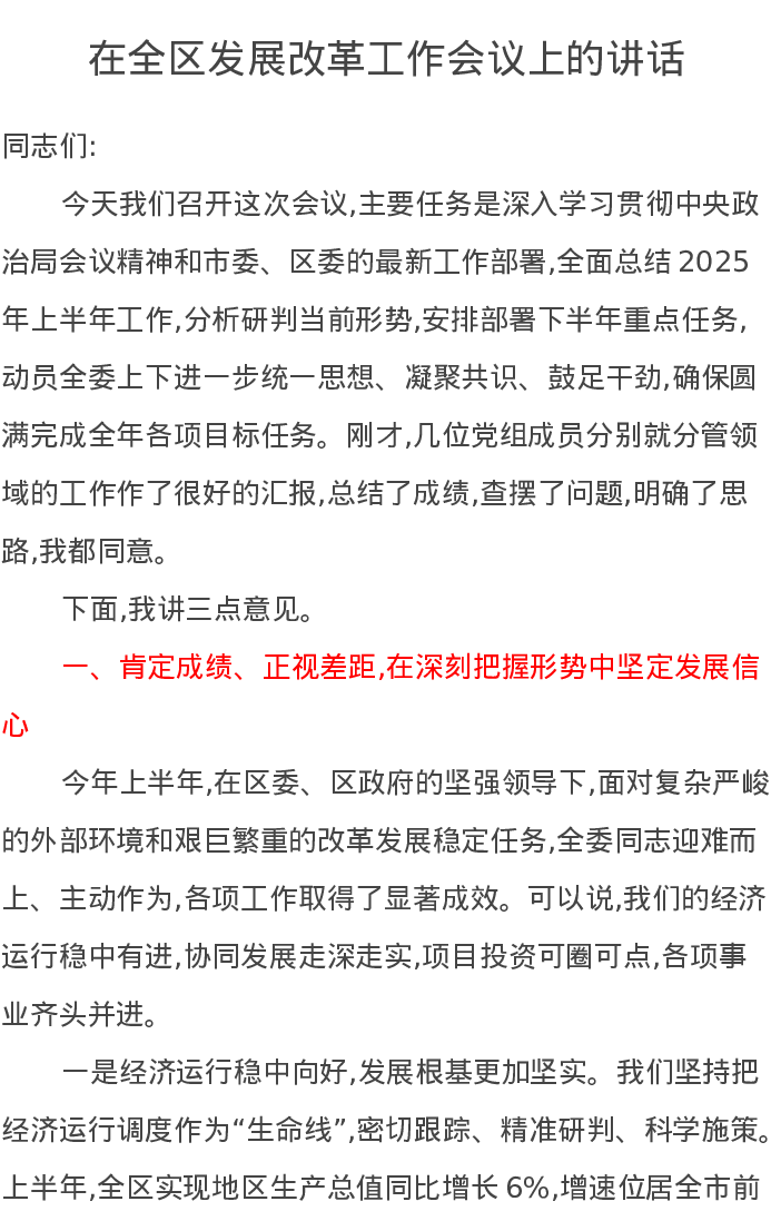 在全区发展改革工作会议上的讲话