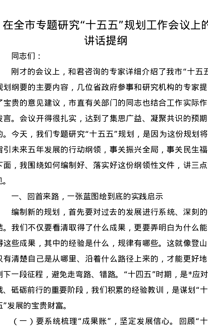 在全市专题研究十五五规划工作会议上的讲话提纲