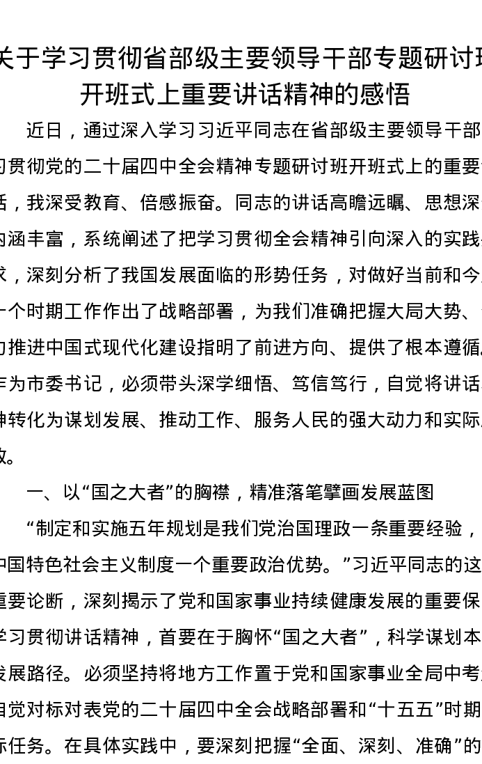 关于学习贯彻省部级主要领导干部专题研讨班开班式上重要讲话精神的感悟