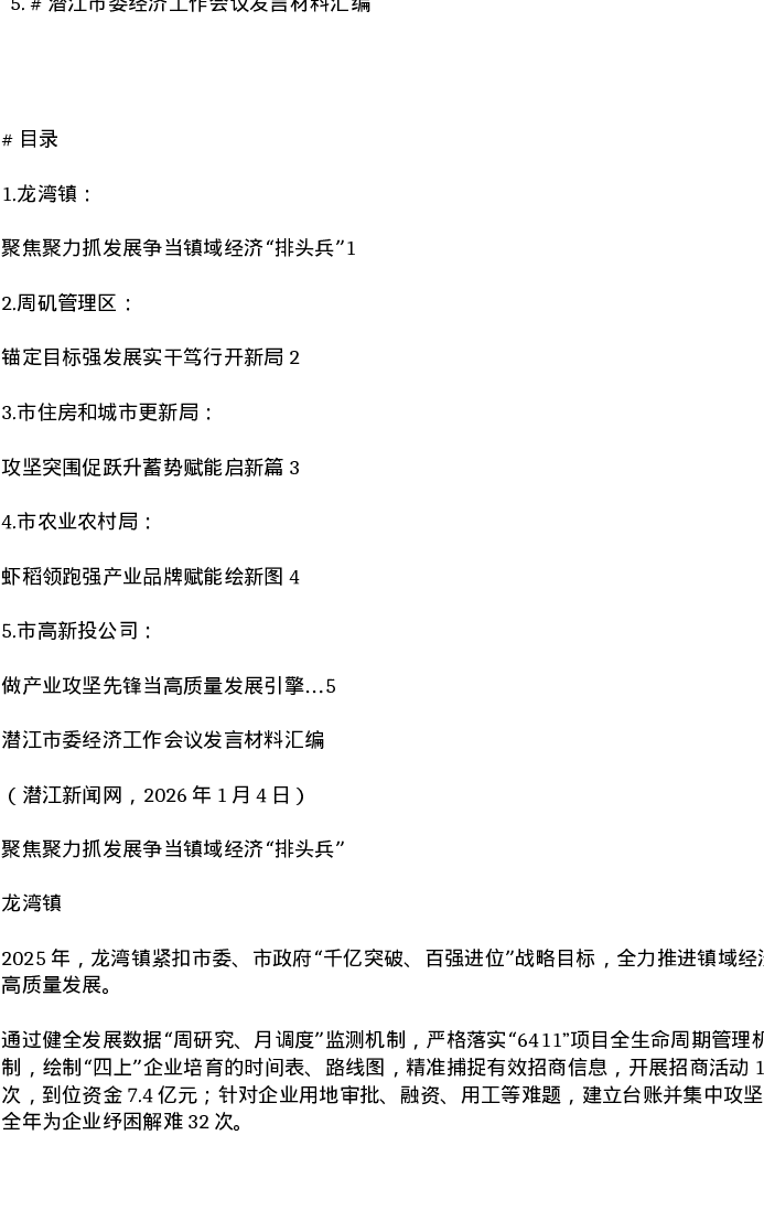 汇编:潜江市委经济工作会议发言材料5篇