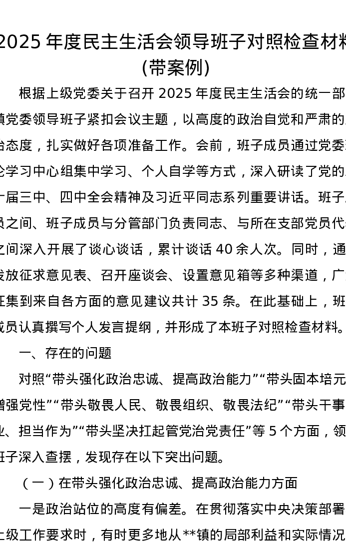 2025年度xxxxx领导班子对照检查材料(带案例)