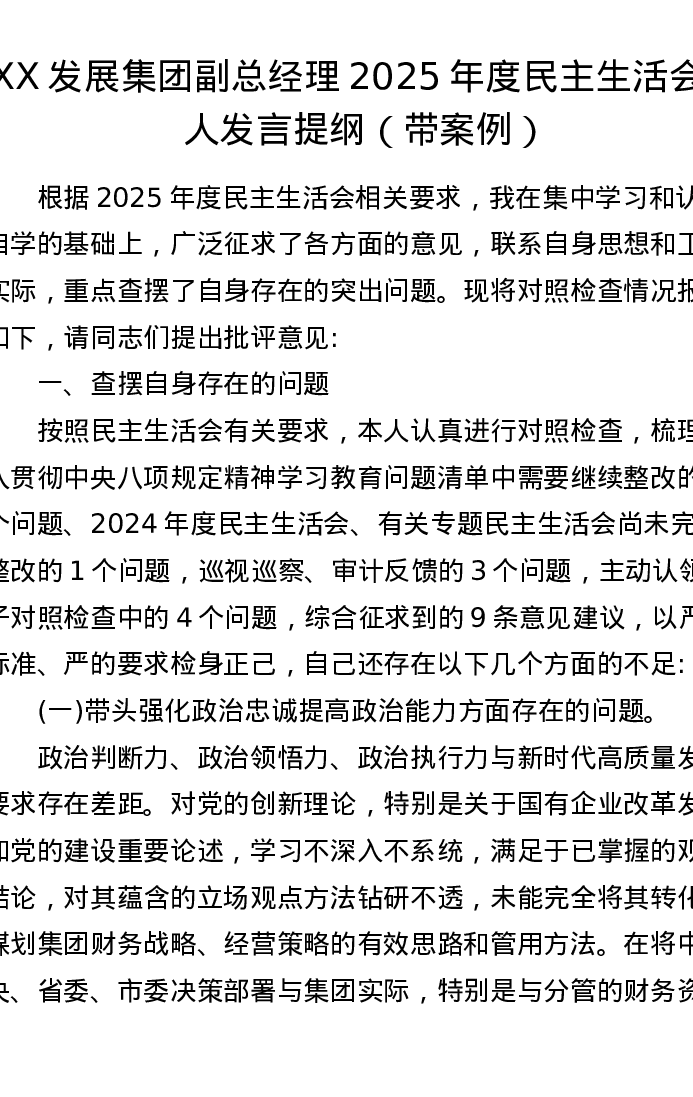 XX发展集团副总经理2025年度xxxxx个人发言提纲(带案例)