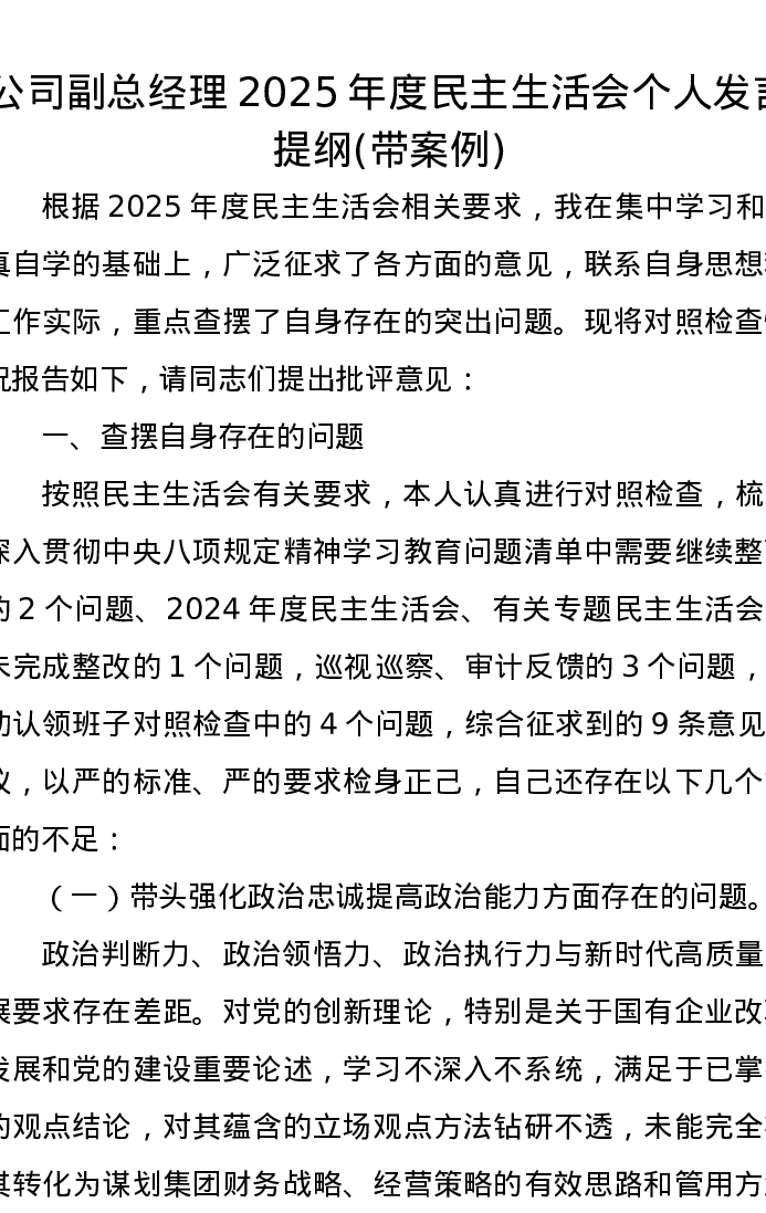 公司副总经理2025年度xxxxx个人发言提纲(带案例)